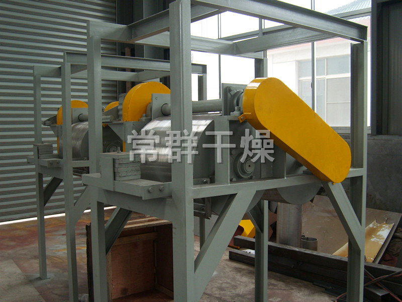 啟動(dòng)電機(jī),主滾筒動(dòng)運(yùn)轉(zhuǎn)平穩(wěn),溫度升高后加入物料后調(diào)整電機(jī)轉(zhuǎn)速及物料在滾筒上薄膜均勻程度來控制物料最終含水量。