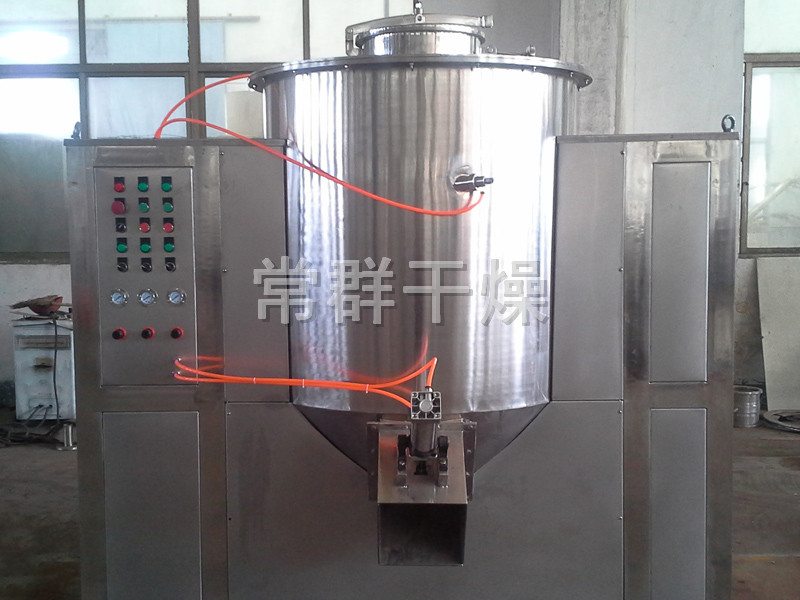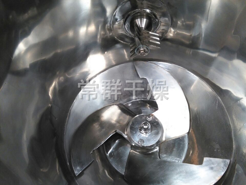 粉體物料與粘合劑在圓筒形容器中由底部混合漿充分混合成濕潤(rùn)軟材,然后由側(cè)置的高速粉碎槳切割成均勻的濕顆粒。