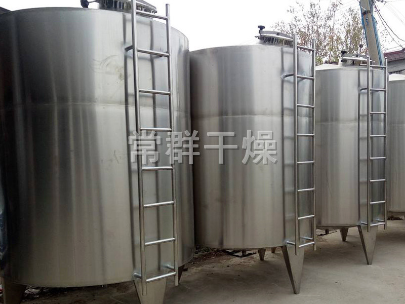 根據(jù)貯存能力不同由1000-15000L,貯罐能力在20000以上的貯罐,建議使用室外貯罐,貯罐使用SUS304不銹鋼制成,根據(jù)罐類設(shè)計要求可附帶裝置如下:攪拌器,進、出料口,人孔,溫度計,液位指示器,高、低液位報警孔,防蠅、防塵呼吸氣孔,計量器