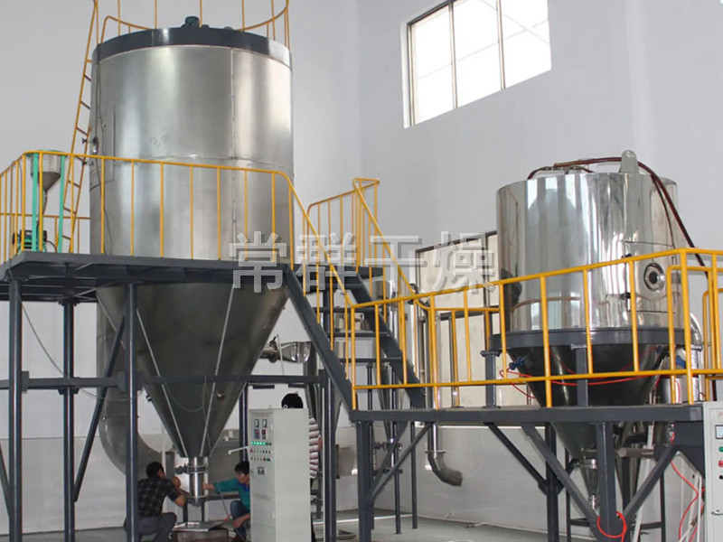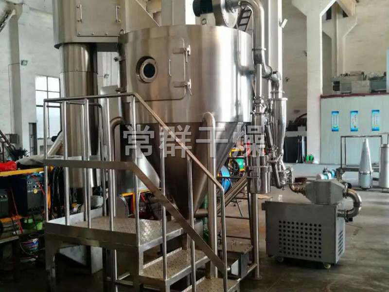 中藥浸膏高速離心噴霧裝置是離心式噴霧干燥技術在特定物料干燥中的應用,也是利用高速離心式霧化器使物料分散成霧狀,與熱空氣充分接觸,完成瞬間干燥,形成粉狀成品的干燥裝置。